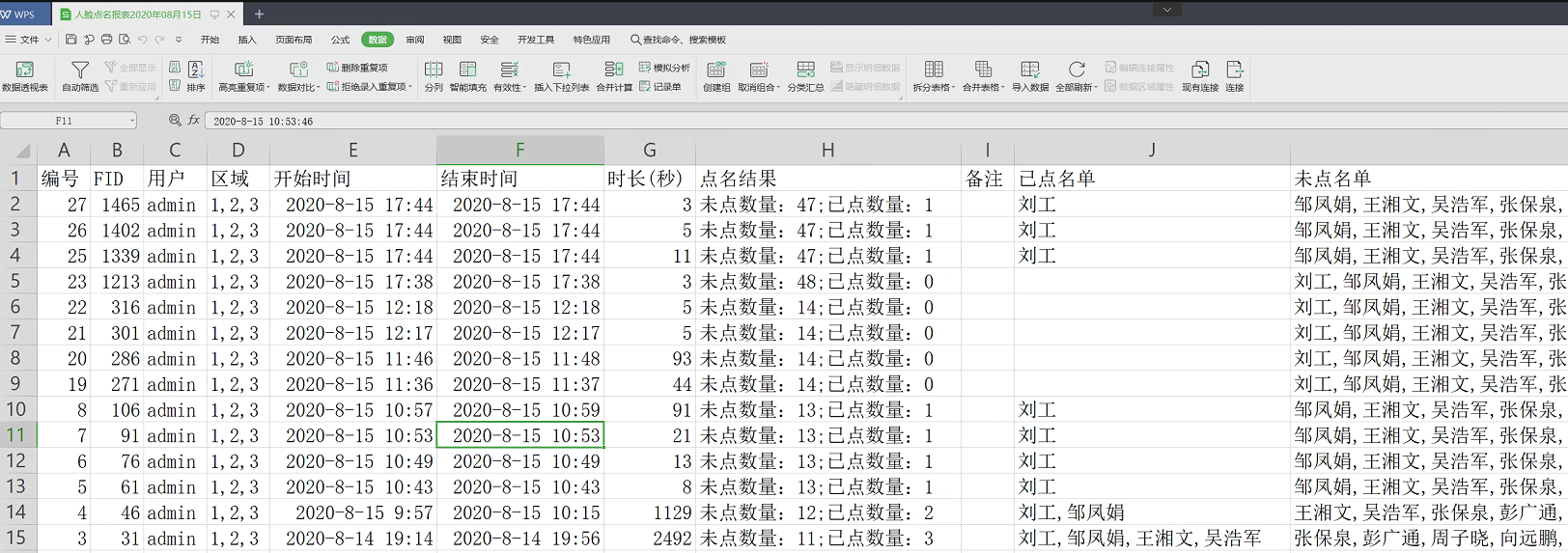 導出點名結果為EXCEL